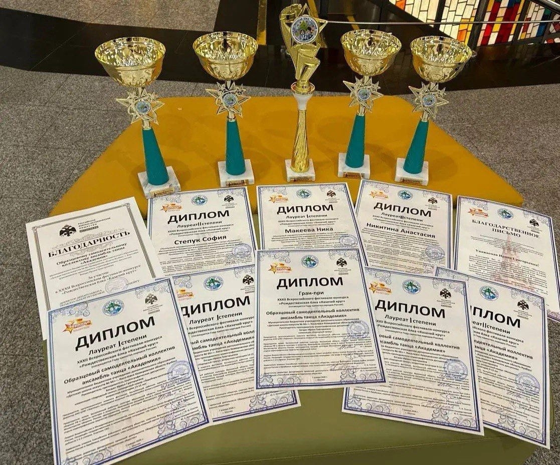 ПОДРОБНОВ XXXII Всероссийском фестивале-конкурсе «Рождественская елка «Казачий круг», который проходил с 5 по 8 января 2026 г (Москва), творческий коллектив Образцовый самодеятельный коллектив ансамбль танца "Академия" (руководитель Ирина Григорьевна Богдан), стали обладателем высшей награды- ГРАН - ПРИ фестиваля! В копилке наград категория АНСАМБЛЬ (8-12 лет) Лауреат 1 степени: "Танец с трещотками", "Посею лебеду" Лауреат 2 степени: "Метелица" (13-15 лет) Лауреат 1 степени: "Моя Россия", "По водицу шла" Лауреат 1 степени: "Переборы - разговоры" СОЛО Лауреат 1 степени: казачий танец "Казачка" - Макеева Ника Лауреат 2 степени: казачий танец "Отрвда". - Степук София Лауреат 3 степени:: казачий танец "Настасья" - Никитина Анастасия Коллектив и руководитель награждены Благодарственным письмом. Для коллектива была организована большая культурная программа. Ребят и родителей ждала обзорная экскурсия по городу "Москва Новогодняя" с посещением Красной площади, Александровского сада, Воробьёвых гор. Коллектив посетил музей - панораму "Бородинская битва 1812 года", побывали в музее - заповеднике Царицыно, где посетили несколько выставкок. В конце поездки организована экскурсия во дворец царя Алексея Фёдоровича в Коломенском, Музей Победы. Мы гордимся наши ребятами за результаты труда и рады новым впечатлениям от поездки в столицу нашей Родины. ПОЗДРАВЛЯЕМ "АКАДЕМИЮ"!!!