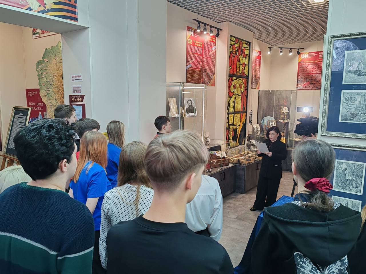 ПОДРОБНО14 мая в Центральной городской библиотеке состоялось торжественное открытие выставки «Книги – ровесники Великой Победы» из фонда Государственной научной библиотеки Кузбасса им. В. Д. Фёдорова с проведением культурно-просветительской программы «Дорогами победителей» в рамках комплексного сетевого мероприятия к 80-летию Великой Победы. Вновь над миром царит весна, сияет яркими красками месяц май. В этом году он для всех нас особенный, победный май, ознаменовавший 80-ю годовщину Великой Победы в Великой Отечественной войне. С первых минут встречи трогательным аккордом прозвучала песня «От героев былых времен» в исполнении Александра Мастерова, солиста группы «Раут», которую присутствующие слушали стоя. В этот значимый день в стенах библиотеки собрались почетные гости: представители Администрации города, депутатского корпуса в лице депутата Совета народных депутатов Перчаткина Андрея Геннадьевича, который обратился к молодежи с призывом, знать и изучать историю страны и прочел стихотворение об Александре Матросове. Перед присутствующими выступил заместитель председателя городского совета ветеранов Романов Сергей Васильевич, а также руководитель Кемеровской региональной общественной организации ветеранов пограничных войск, локальных войн и воинской чести «Паритет» Петр Александрович Полосухин. Теплые слова пожеланий молодому поколению киселевчан прозвучали от начальника Управления культуры Киселевского городского округа Овчинниковой Ирины Александровны. Директор МБУК «ЦБС» Наталья Алексеевна Овсянникова поделилась с присутствующими итогами участия библиотек ЦБС в реализации патриотических проектов. О вкладе в патриотическую работу рассказали в своем выступлении Денис Згурский, представитель городского штаба «Волонтеры Победы» и Екатерина Ульянова, специалист по организации работы «Движения Первых». Зрителями и активными участниками торжественной встречи стала молодежь города – старшеклассники Лицея №1, школы №28 и школы №3.
