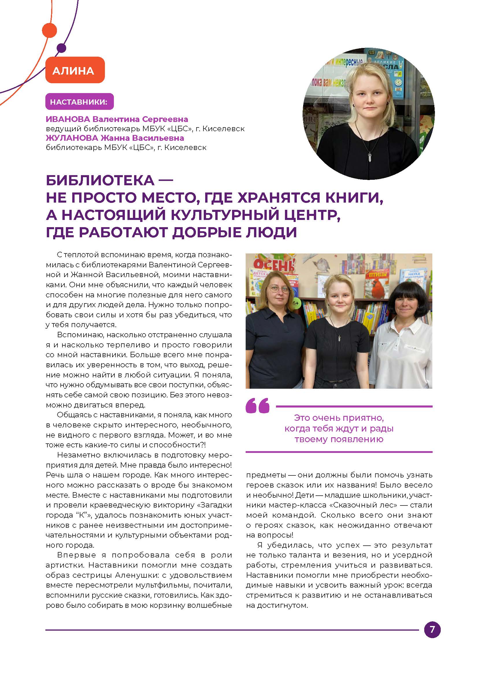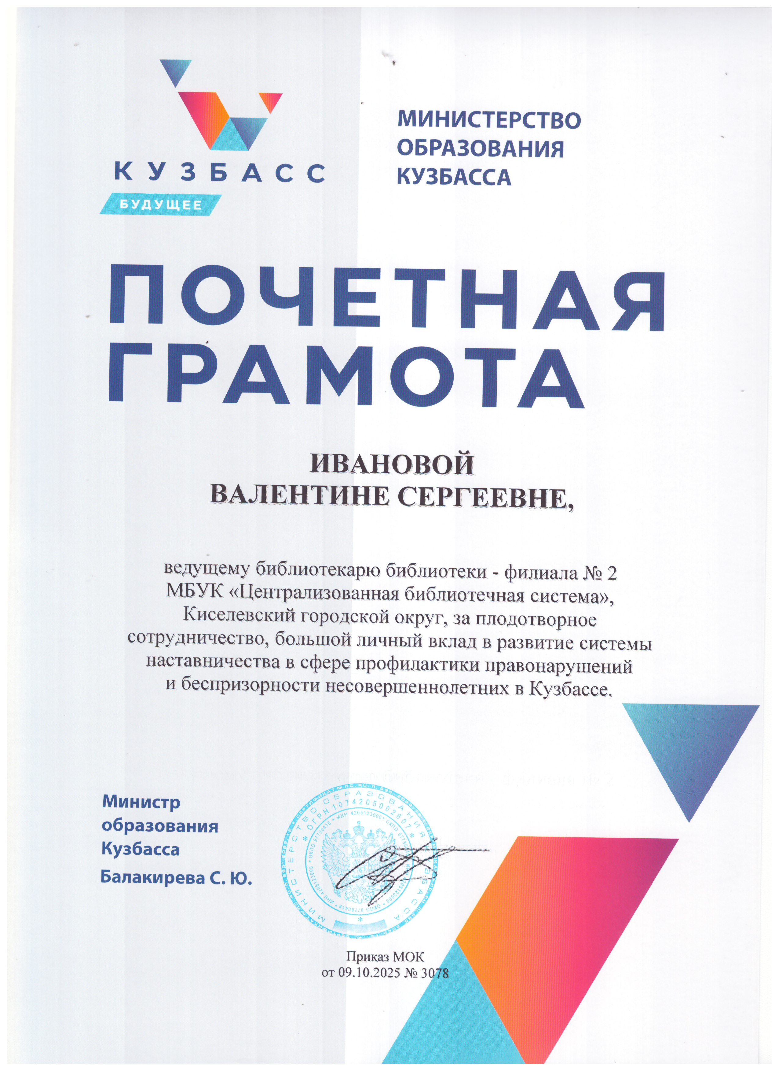 ПОДРОБНО15 октября 2025 года ведущий библиотекарь Иванова Валентина Сергеевна и библиотекарь Жуланова Жанна Васильевна приняли участие в региональном слете наставников, который состоялся в ГБУ ДПО «КРИРПО» имени А.М. Тулеева. Это значимое мероприятие объединило более 200 участников, наставников-волонтеров различных профессий: предпринимателей, педагогов, спортсменов и работников культуры, энергичных и вовлеченных людей, которые стремятся делиться наработками, мотивировать подрастающее поколение и содействовать реализации их возможностей и амбиций. Слет послужил важной платформой для обмена опытом, рассмотрения инновационных подходов к наставничеству и определения перспектив развития данного направления. В 2025 году специалисты библиотеки-филиала № 2 Валентина Сергеевна и Жанна Васильевна стали наставниками для двух юных киселевчан в рамках муниципального проекта «Успешное лето с наставником». Вовлечение подростков в полезную деятельность, будь то благоустройство территории или организация мероприятий, способствовало их социальной адаптации и развитию. Молодые люди получили возможность проявить свои таланты, почувствовать себя нужными и полезными, что позитивно сказалось на их самооценке и уверенности в себе. Подобные проекты предотвращают правонарушения и преступления среди несовершеннолетних, считают библиотекари. По завершении регионального слета 22 участника были отмечены Министерством образования Кузбасса. По итогам работы Почетной грамотой за плодотворное сотрудничество, большой личный вклад в развитие системы наставничества в сфере профилактики правонарушений и беспризорности несовершеннолетних в Кузбассе отмечена ведущий библиотекарь библиотеки-филиала № 2 Иванова Валентина Сергеевна. Областной слет наставников в очередной раз подтвердил, что наставничество – это не только работа, но и высокое предназначение, играющее решающую роль в формировании будущего нашего региона.